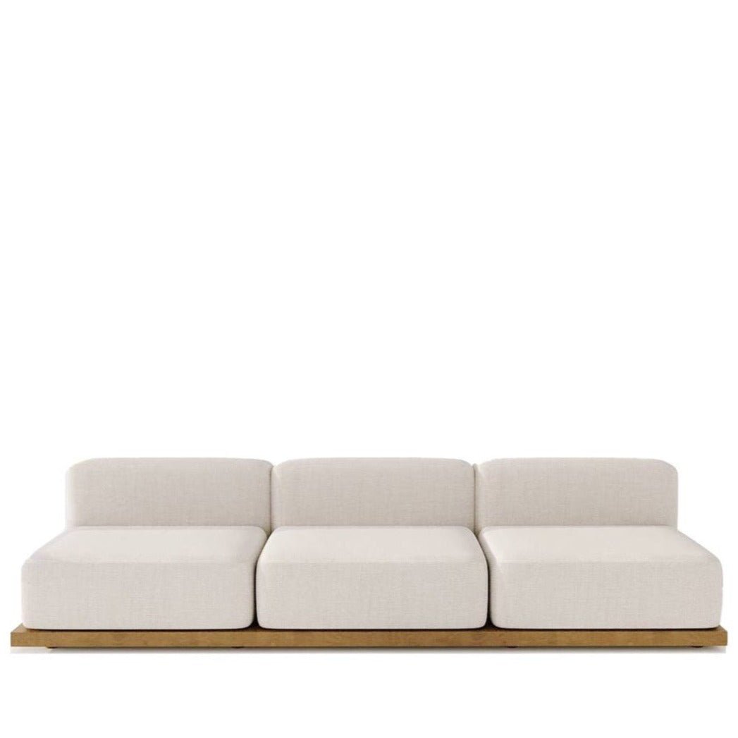 The Akira Sofa 3S is a modern and luxurious addition to your home. Made with premium white cotton blend, this armless sofa boasts a low backrest and elegant wooden base, providing both comfort and style. Elevate your living with the exclusive Akira Sofa 3S. Features : With its armless design, this sofa exudes simplicity and modern elegance. Crafted with a wooden base and wrapped in a soft white cotton blend. Boasts a low backrest seamlessly connected to the ground. Check out Akira Japanese Chair – Akira Coffee Table for a matching Set! Product Details : Availability : On-Demand Type : Straight Sofa Seating Capacity : 3 Shape : Rectangle Design : Modern Armless : Yes Upholstery Material : Premium Cotton Blend Color Fabric : White Cotton Blend Frame Material : Wood Base Material : Wood Seat & Back Fill Material : Foam Assembly Required : No Care Instructions : Spot clean by blotting with absorbent towel or clean damp cloth, do not rub, do not use strong liquid cleaners. Dimensions : Overall Dimensions : 270 W x 90 D x 70 H CM Seat Height – Floor to Seat : 40 CM