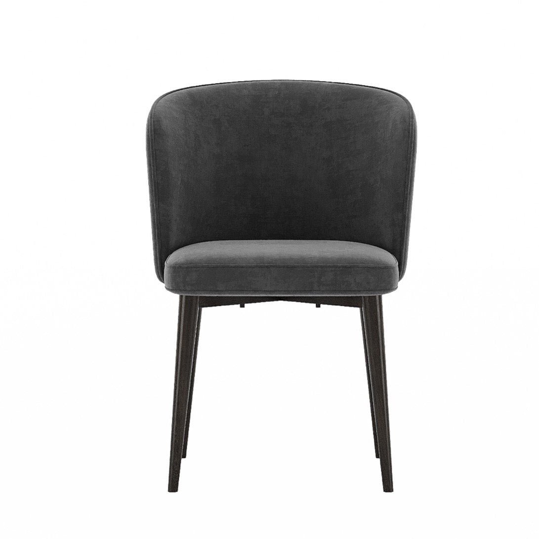 Indulge in the luxury of our Arian Dining Chair, crafted with premium dark grey and red matt velvet and four sleek metal legs. The armless design boasts a curved backrest, making it the perfect addition to any modern dining room. Experience superior comfort and style with this exclusive piece. Features : Featuring a sleek armless design and a gracefully curved backrest. Crafted with sleek metal legs and a sturdy base. The dark grey, red matt velvet not only adds a touch of glamour but also ensures comfort and durability. Product Details : Availability : On-Demand Type : Dining Chair Seating Capacity : 1 Back Style : Curved Armless : Yes Design : Modern Upholstery Material : Matt Velvet Color Fabric : Dark Grey, Red Matt Velvet Base Material : Metal Number of Legs : 4 Type of Legs : Skinny and Tall Frame Material : Solid Wood Seat & Back Fill Material : Foam Assembly Required : No Care Instructions : Spot clean by blotting with absorbent towel or clean damp cloth, do not rub, do not use strong liquid cleaners. Dimensions : Overall Dimensions : 55 W x 55 D x 75 H CM Seat Hight – Floor to Seat : 45 CM