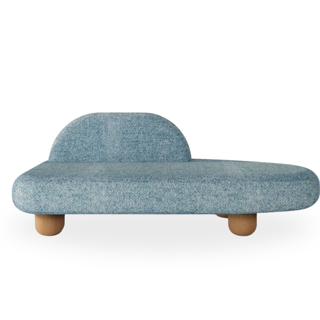 Introducing the Audrey Chaise in Baby Blue Cotton-Blend. With a curved corner seat and backrest, this modern chaise offers both style and comfort. Available in left or right backrest orientation, this colorful and beautiful piece will elevate any modern space. The four wooden, spherical legs add a touch of sophistication and elegance. Features : Crafted with four elegant wooden legs in a spherical shape. Its curved corner seat and backrest offer you the ultimate comfort while lounging. Its versatile design allows for both left and right orientations. Product Details : Availability : On-Demand Type : Chaise Seating Capacity : 2 Design : Modern Orientation : Left or Right Backrest Frame Material : Solid Manufactured Wood Upholstery Material : Premium Cotton-Blend Color Fabric : Baby Blue Cotton-Blend Base Material : Solid Wood Base Color : Oak Finish Number of Legs : 4 Seat & Back Fill Material : Foam Assembly Required : No Toss Pillow : Included Care Instructions : Wipe surfaces with a soft damp or dry cloth Dimensions : Overall Dimensions : 215 W x 90 D x 80 H CM Backrest Width : 110 CM Backrest Hight : 35 CM Seat Hight – Floor to Seat : 45 CM