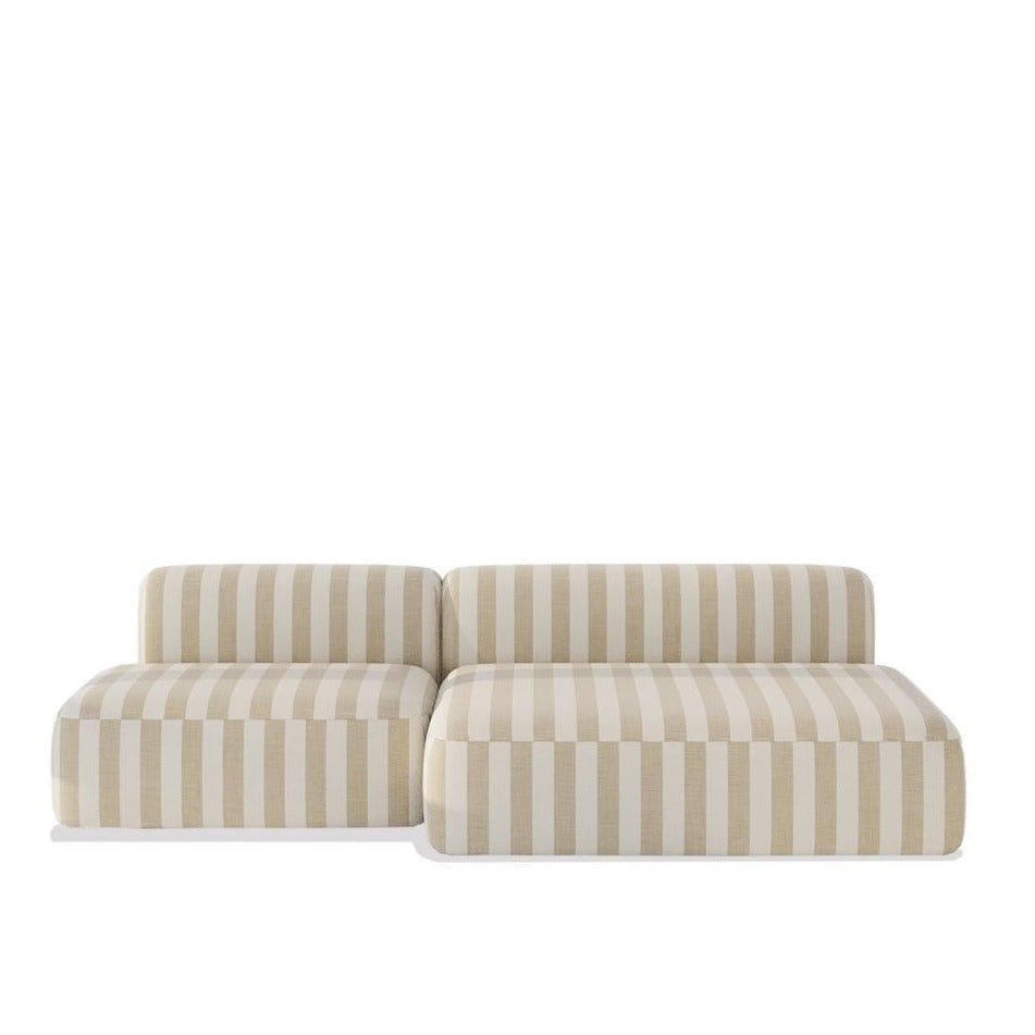 Experience luxury and sophistication with the Aurelio Sofa. Crafted with a modern, armless design and l-shaped silhouette, this sofa is perfect for any modern living room. The white and beige satin adds an elegant touch, while the backrest connected to the ground provides both style and comfort. Features : Its armless design and elegant upholstery in white and beige satin exude stylish. A backrest that connects to the floor provides unmatched support and style. The elegant upholstered fabric in white & beige satin adds a touch of sophistication. Product Details : Availability : On-Demand Type : Straight Sofa Seating Capacity : 3 Shape : L-Shaped Design : Modern Armless : Yes Upholstery Material : Premium Satin Color Fabric : White & Beige Satin Frame Material : Wood Seat & Back Fill Material : Foam Assembly Required : No Care Instructions : Spot clean by blotting with absorbent towel or clean damp cloth, do not rub, do not use strong liquid cleaners. Dimensions : Overall Dimensions : 270 W x 140 D x 70 H CM Seat Hight – Floor to Seat : 40 CM
