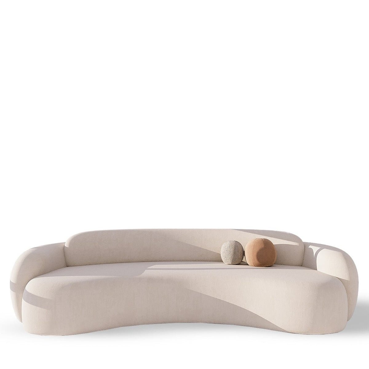 Introducing Carmel Sofa 2S, a modern and luxurious addition to your living room. Made with premium off-white cotton blend, this sofa features a low, curved backrest and connected arms for a sleek look. Elevate your living space with our sophisticated and exclusive design. Features : Boasts a graceful curved backrest and an elegantly curved shape. This sofa features a low backrest and connected arms for ultimate relaxation. Creating a stunning focal point in any room. Product Details : Availability : On-Demand Type : Sofa Seating Capacity : 2 Shape : Curved Rectangle Design : Modern Upholstery Material : Premium Cotton Blend Color Fabric : Off-White Cotton Blend Frame Material : Solid Wood Seat & Back Fill Material : Foam Assembly Required : No Care Instructions : Spot clean by blotting with absorbent towel or clean damp cloth, do not rub, do not use strong liquid cleaners. Dimensions : Overall Dimensions : 210 W x 100 D x 72 H CM Seat Hight – Floor to Seat : 40 CM