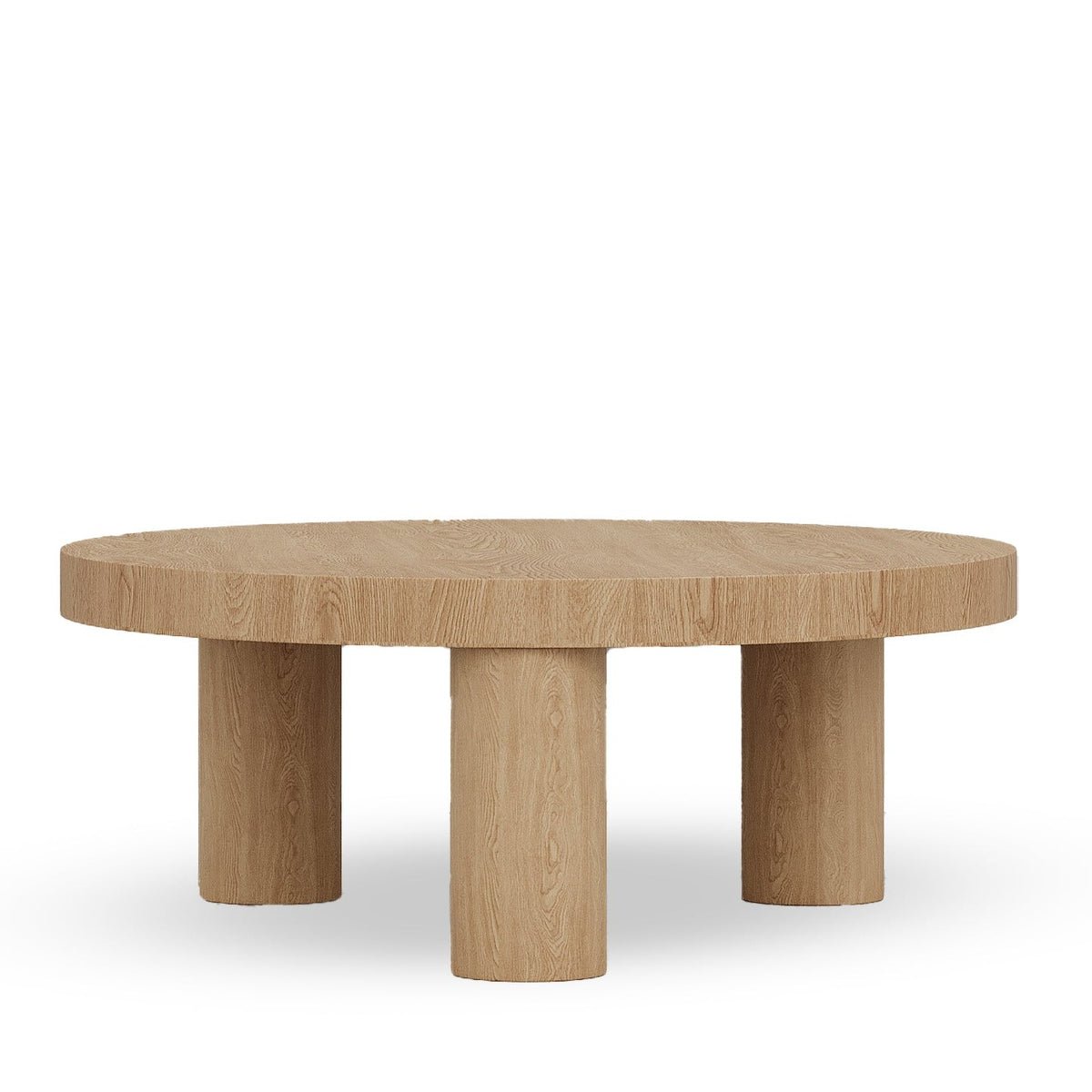 This sleek and modern Chloe Coffee Table adds a touch of nature to your living room. Crafted from MDF wood and finished in a walnut tone, its three legs and round shape bring a contemporary elegance to your space. Enhance your modern aesthetic with this stunning piece. Features : Design features three curved legs that add a touch of artistry to any room. The round shape creates a sense of effortless flow. Crafted from premium MDF wood, this table boasts a walnut finish that perfectly complements any home decor. Check out Chloe Side Table for a matching set! Product Details : Availability : On-Demand Type : Coffee Table Shape : Round Design : Modern Top & Base Material : MDF and Veneer Base Color : Walnut Finish Number of Legs : 3 Type of Legs : Round Assembly Required : No Care Instructions : Spot clean by blotting with absorbent towel or clean damp cloth, do not rub, do not use strong liquid cleaners Dimensions : Overall Dimensions : 90 Dia x 35 H CM
