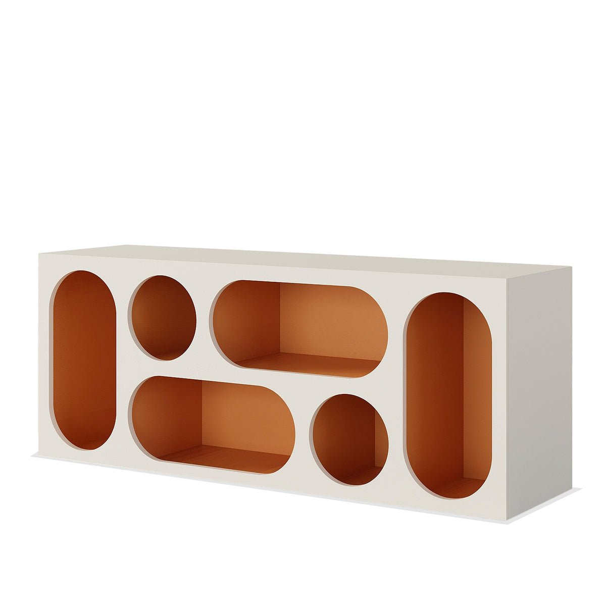 The Cloudera Cabinet Display V2 is a strikingly modern piece with a clean color finish. Its deep smooth texture and appeal gives it a comfy feel in your living room. Switch up your decor with style! ??????????????????????????????????????? Features Sleek, clean design for a modern aesthetic Number of holes to store comfortably Sturdy construction suitable for displaying decorative items Versatile style that complements contemporary and eclectic decor ??????????????????????????????????????? Product Details Availability : On-Demand Type : Cabinet Display Shape : Rectangle Design : Modern Top & Base Material : MDF Finish: PU Paint Number of shelves: 2 Number of holes: 6 Color : Off-White & Orange Assembly Required : No Care + Clean: Spot clean by blotting with absorbent towel or clean damp cloth, do not rub, do not use strong liquid cleaners. ??????????????????????????????????????? Dimensions Overall: 150 W x 45 D x 60 H cm Check out the Cloudera V1 Cabinet for a Vertical Variation! Pre-Specified Dimensions: (Reach Out For Customization)